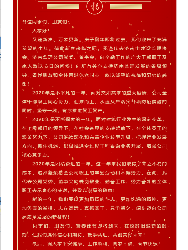 凝心聚力 逐夢前行——濟南監(jiān)理黨委書記、董事長林峰春節(jié)致辭
