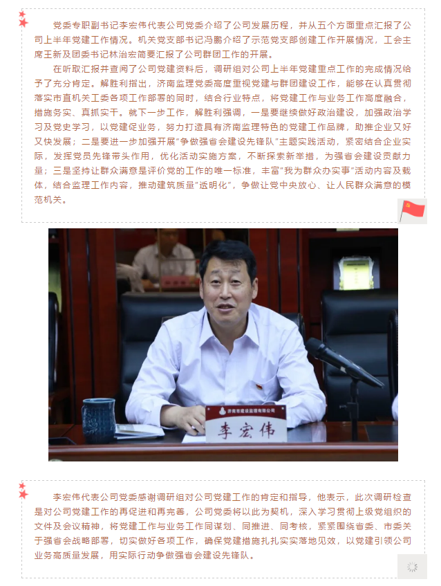 濟南市委市直機關(guān)工委調(diào)研組蒞臨濟南監(jiān)理指導(dǎo)黨建工作